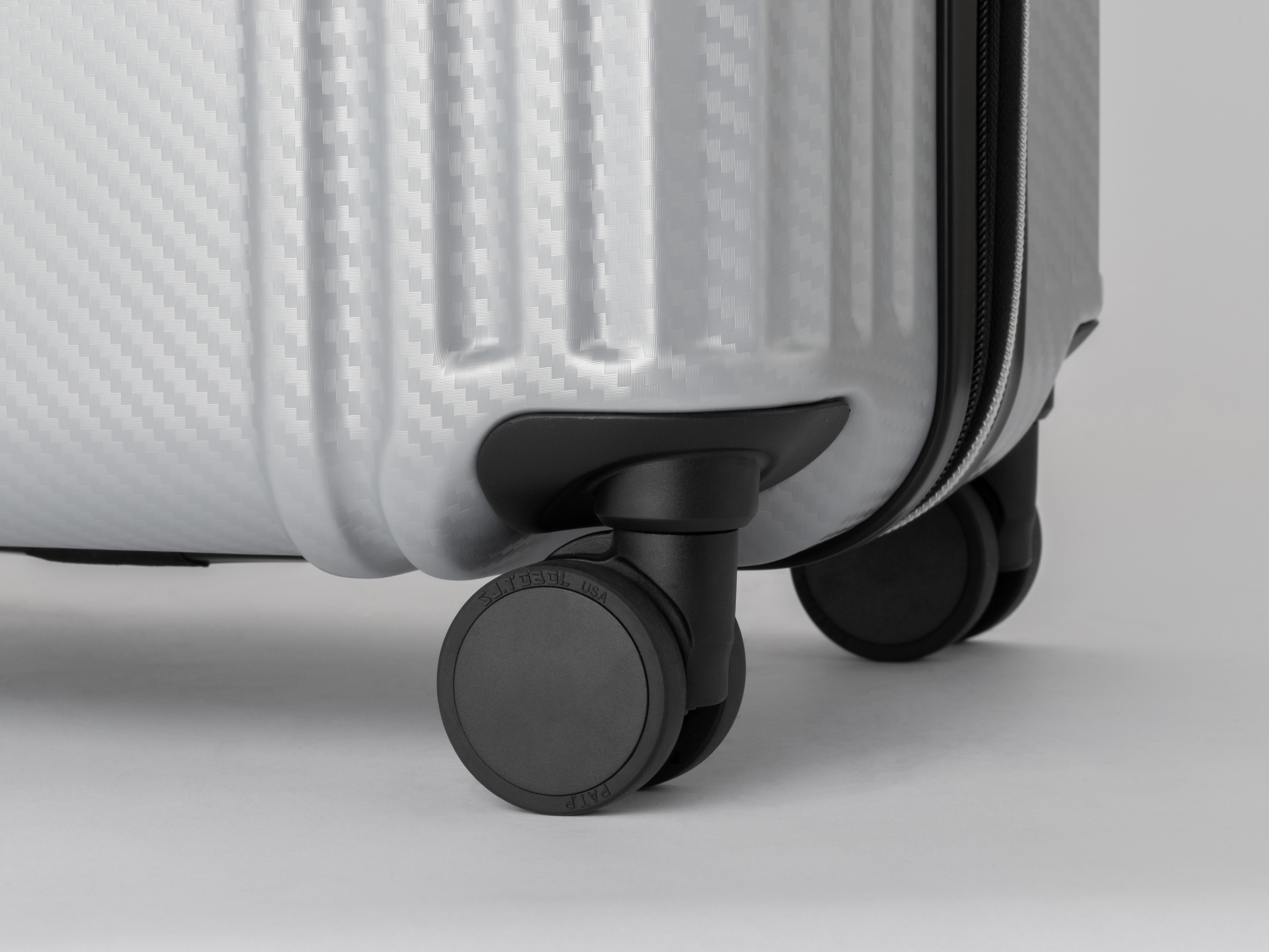 PC(ポリカーボネート)+ABS樹脂で作られたボディは軽さと強さを兼ね備えています。ボディ表面はエンボス加工仕上げ。きめ細やかな凸凹が、上品にカーボン模様を浮かび上がらせます。