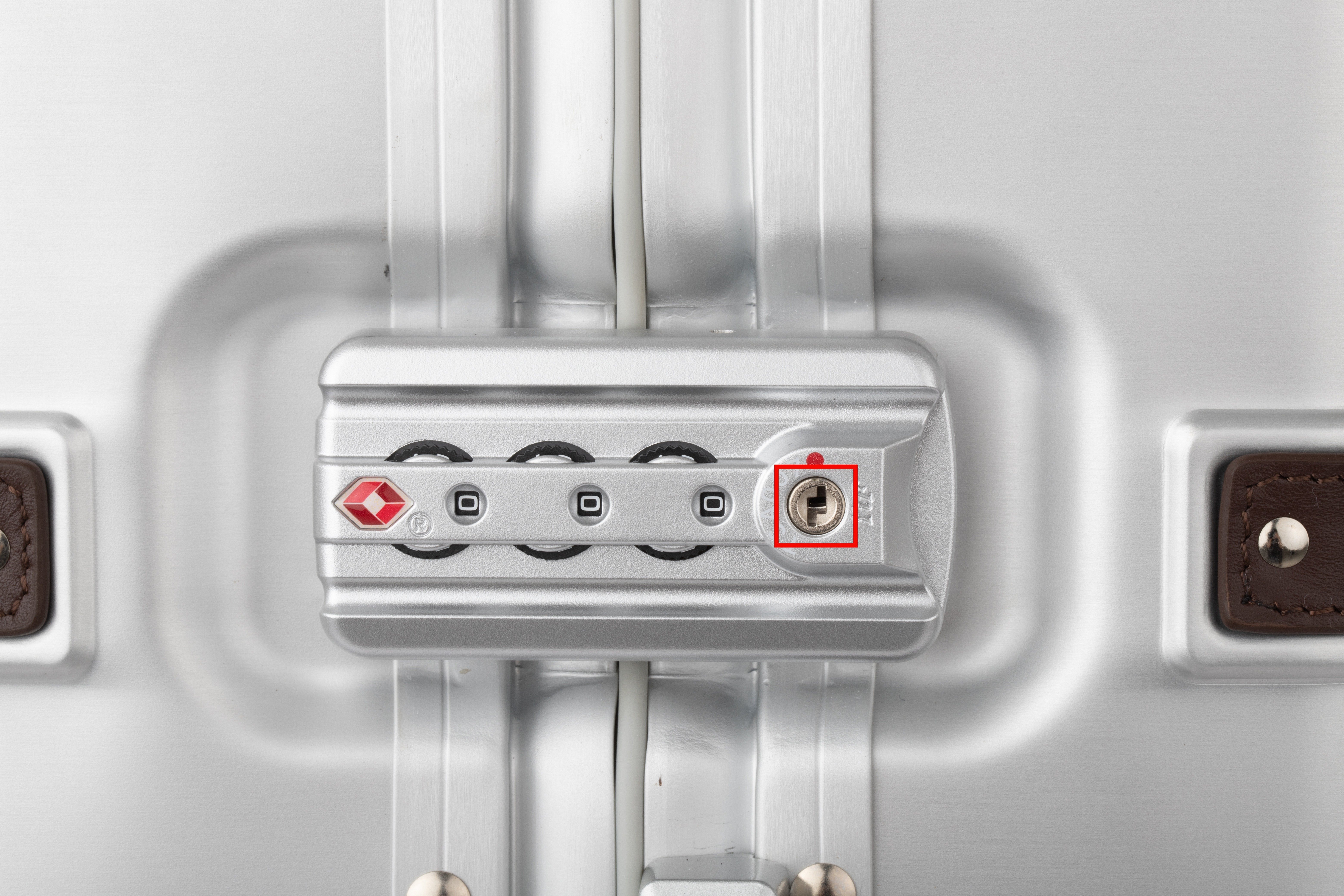 この鍵穴は空港に預けた際TSA職員が解錠の際に使用するものです。
