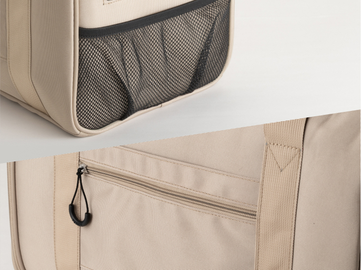 小物や保冷剤の収納に便利な外ポケット+中ポケット