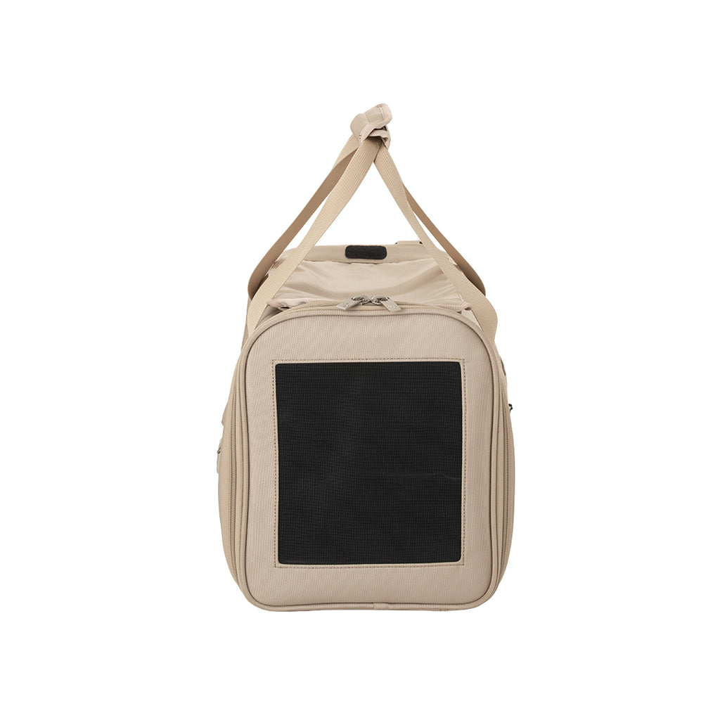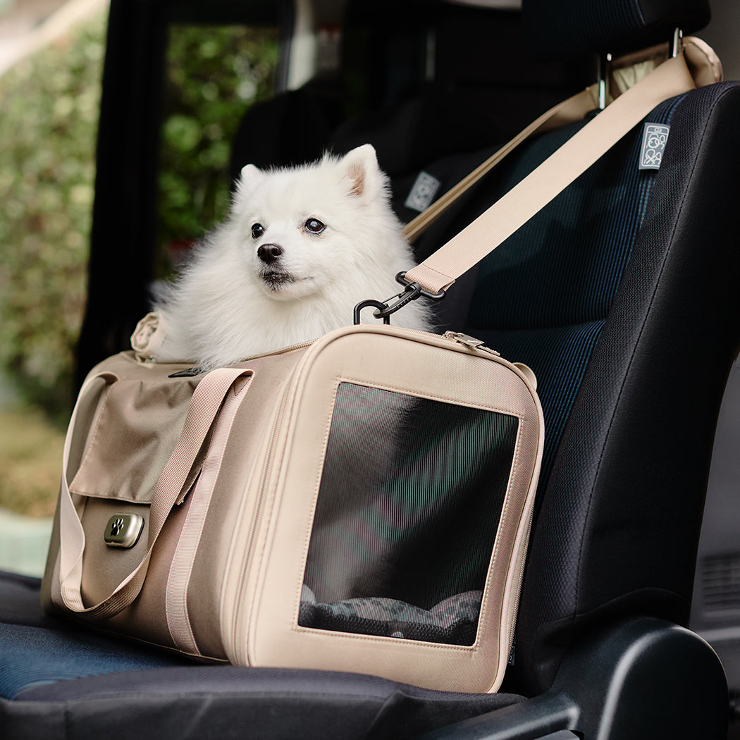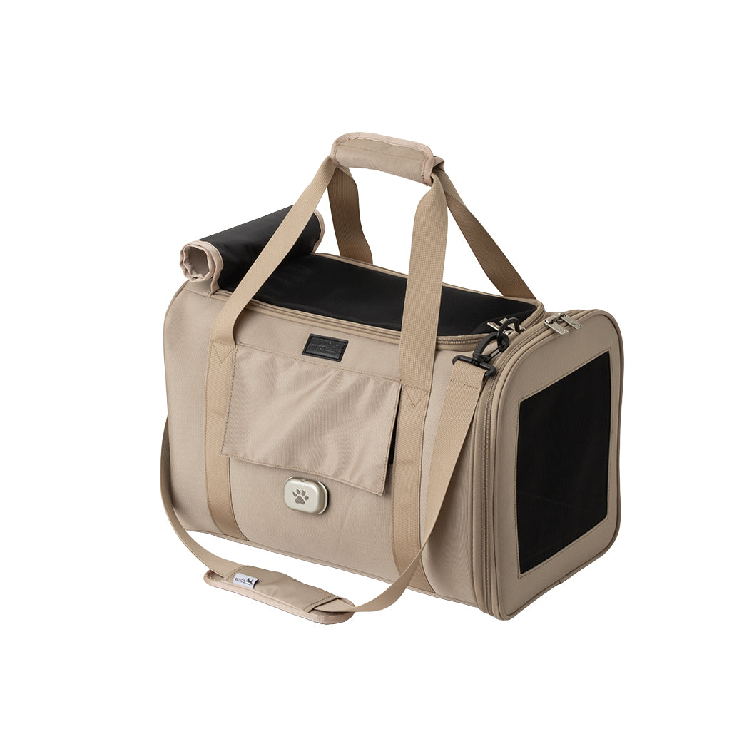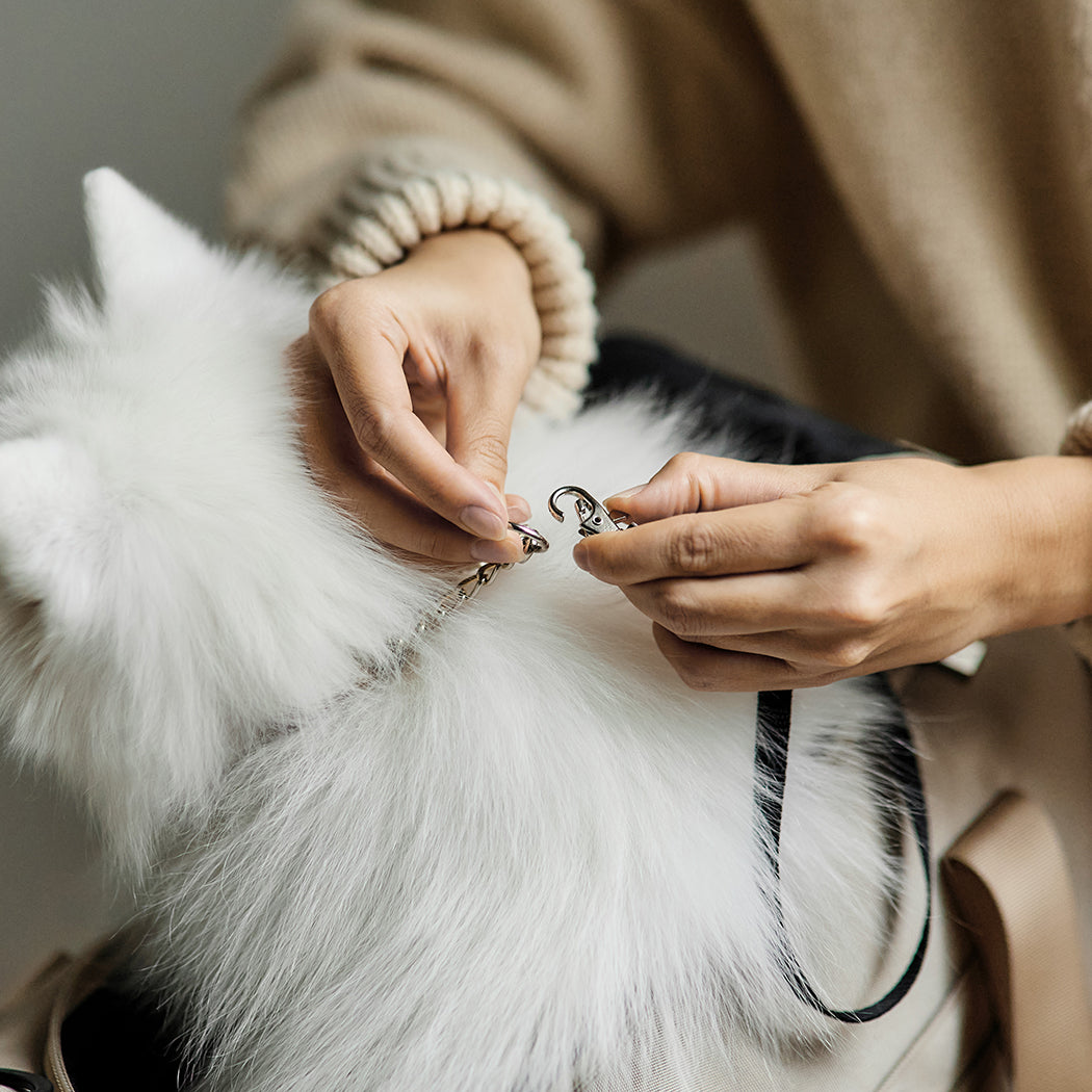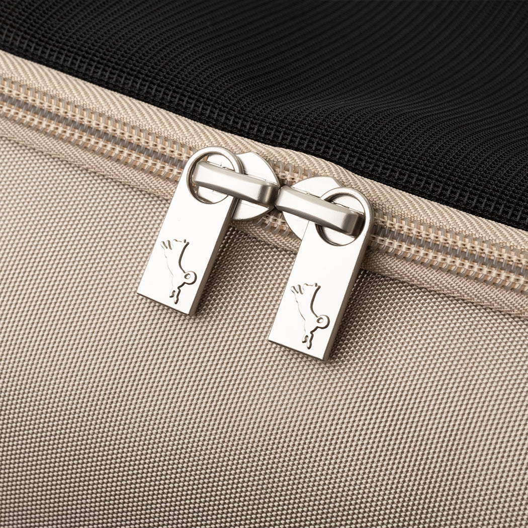 厚みがあり長時間でも疲れにくい形状のショルダーベルトを採用しているほか、両サイドがメッシュ仕様で通気性抜群。ペットも飼い主も快適におでかけできるよう、素材や機能など細部までこだわり抜いたバッグです。