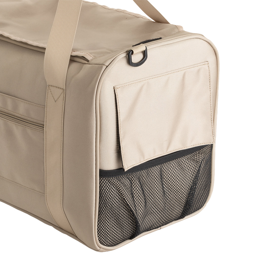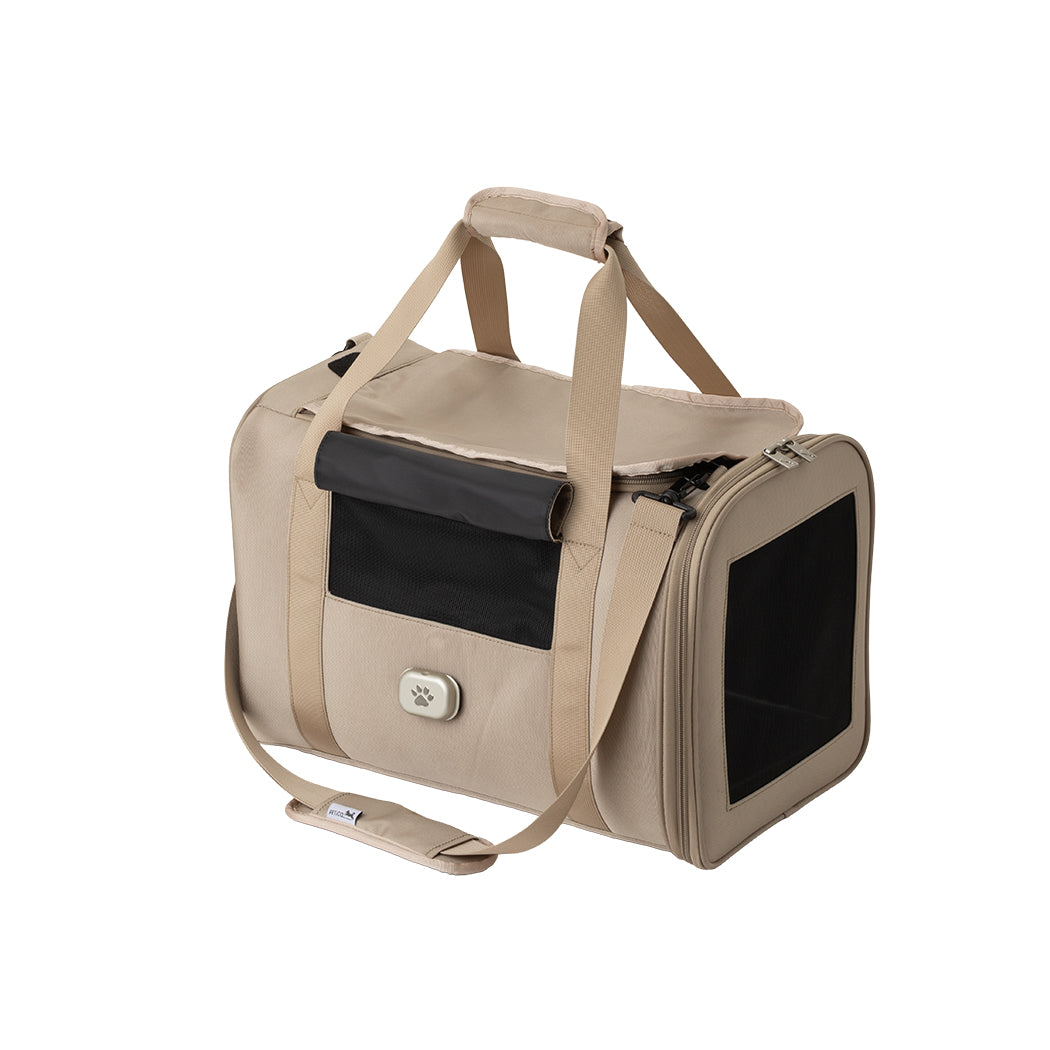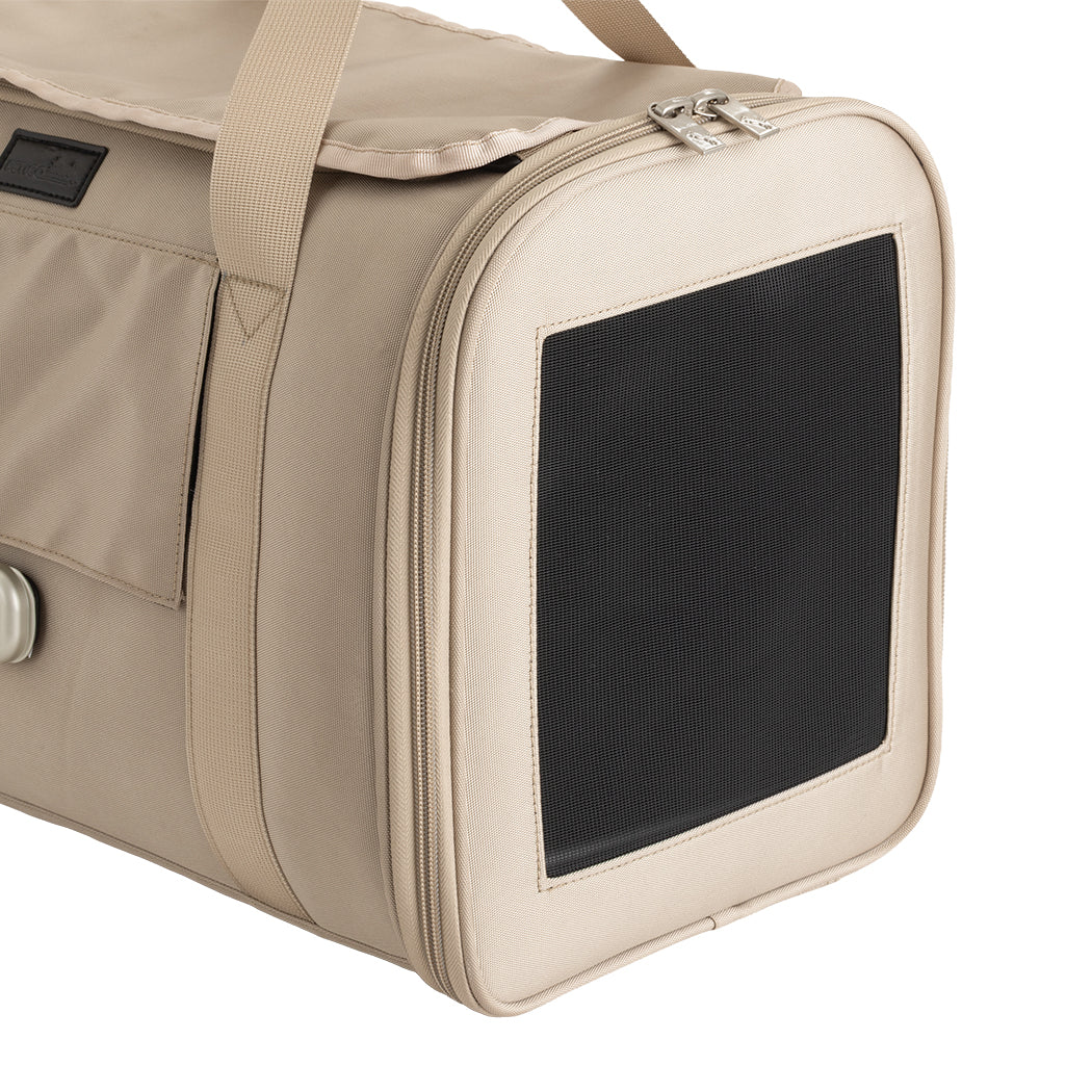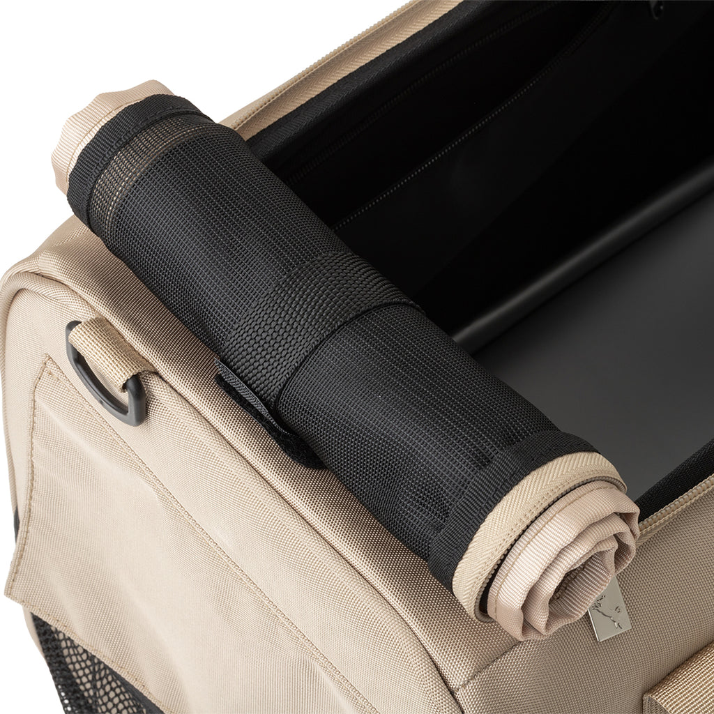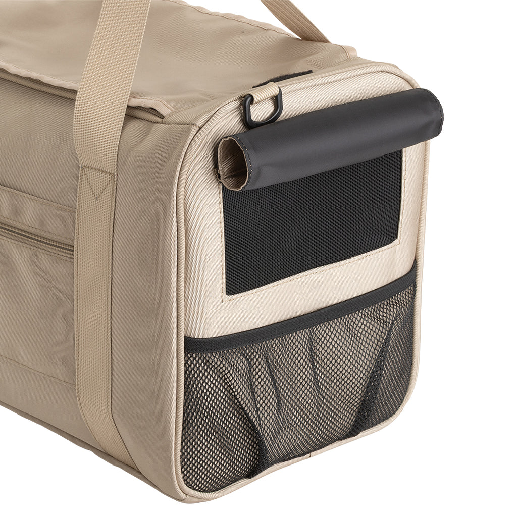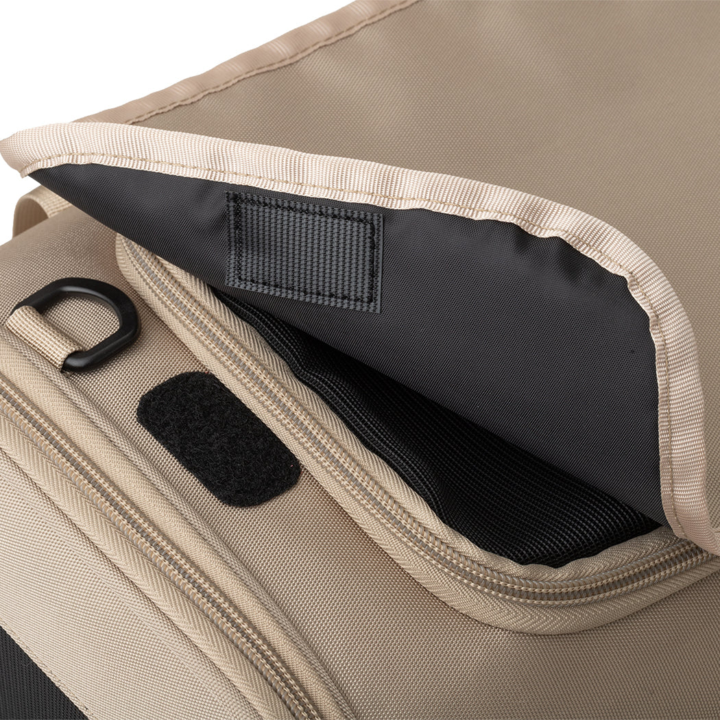 厚みがあり長時間でも疲れにくい形状のショルダーベルトを採用しているほか、両サイドがメッシュ仕様で通気性抜群。ペットも飼い主も快適におでかけできるよう、素材や機能など細部までこだわり抜いたバッグです。
