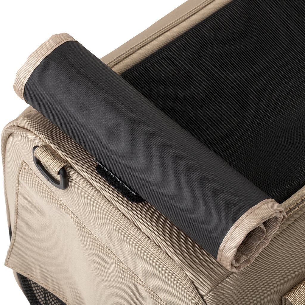芯材にグラスファイバーロッドが入っているので、ソフトキャリータイプなのに型崩れしにくく、変形に強くなっています。