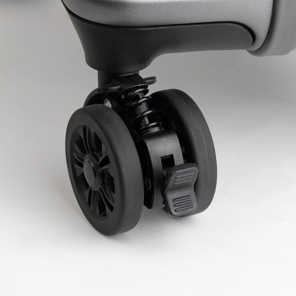 内蔵コイルスプリングが路面からの衝撃を吸収するクッション付きのダブルキャスター(合計8輪)。