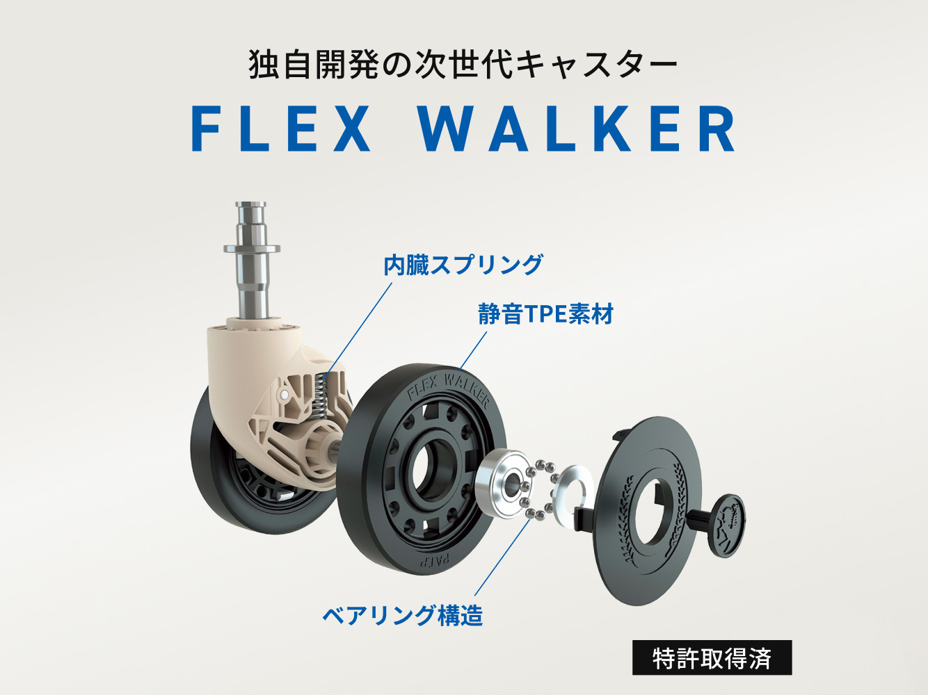滑らかな走行と静音性を実現する”FlexWalker”