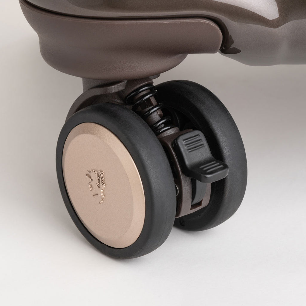 内蔵コイルスプリングが路面からの衝撃を吸収するクッション付きの60mm大径ダブルキャスター(合計8輪)。