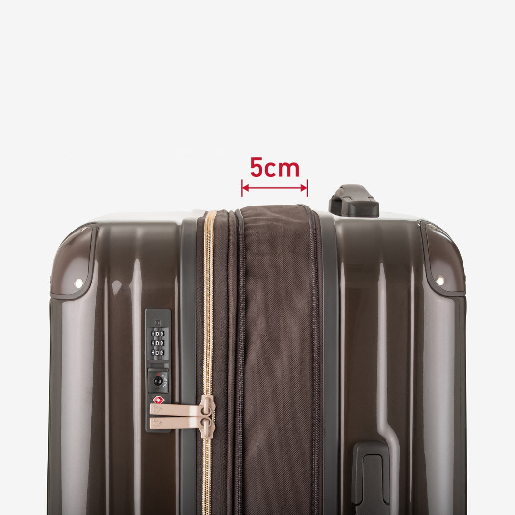 ファスナー操作でマチ幅が約5cmアップします。旅先での買い物などで荷物が増えても安心です。