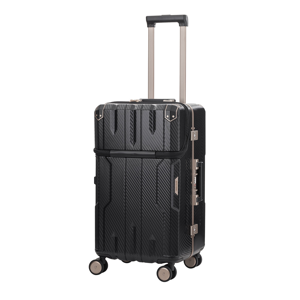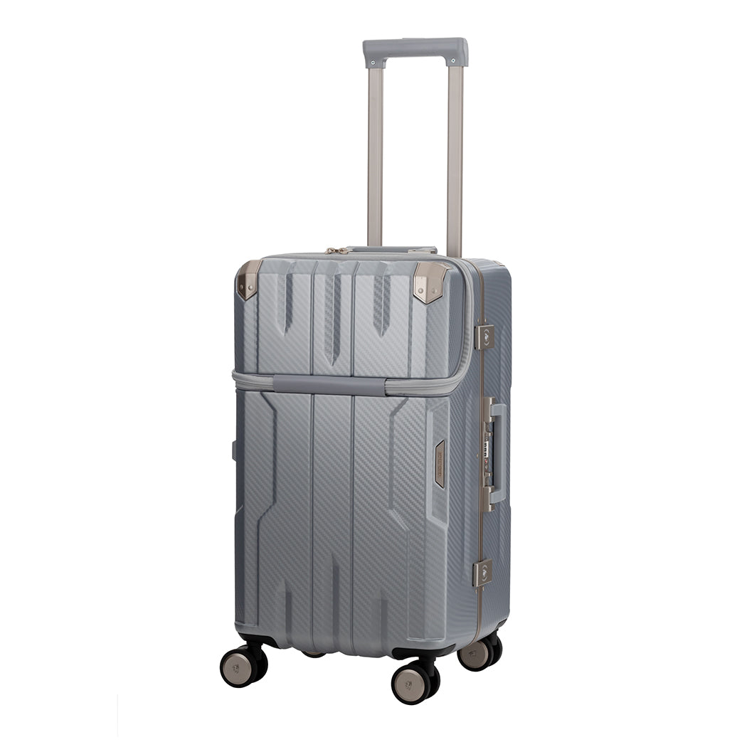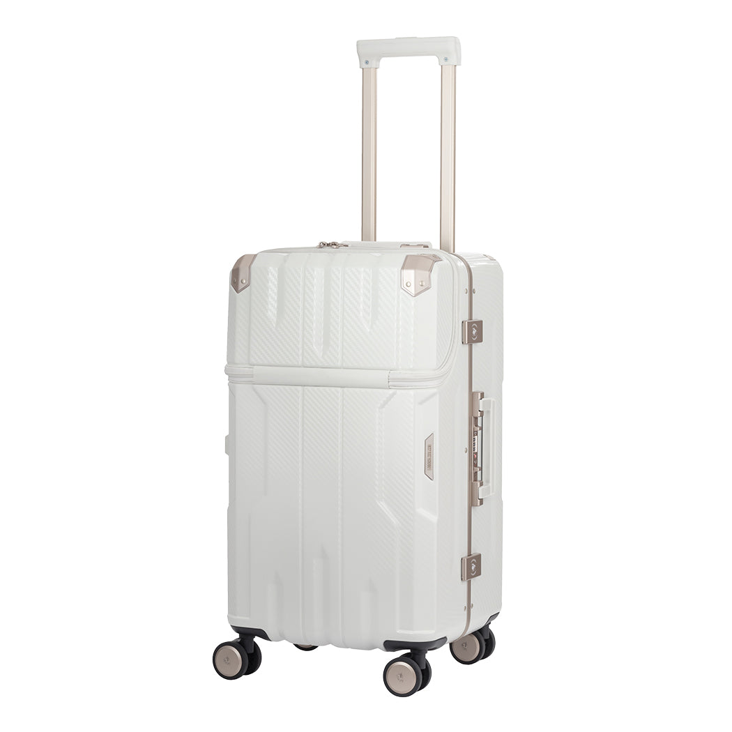 メイン収納の開閉部分には、軽量でスタイリッシュなデザインのアルミニウム製スリムフレームを採用。