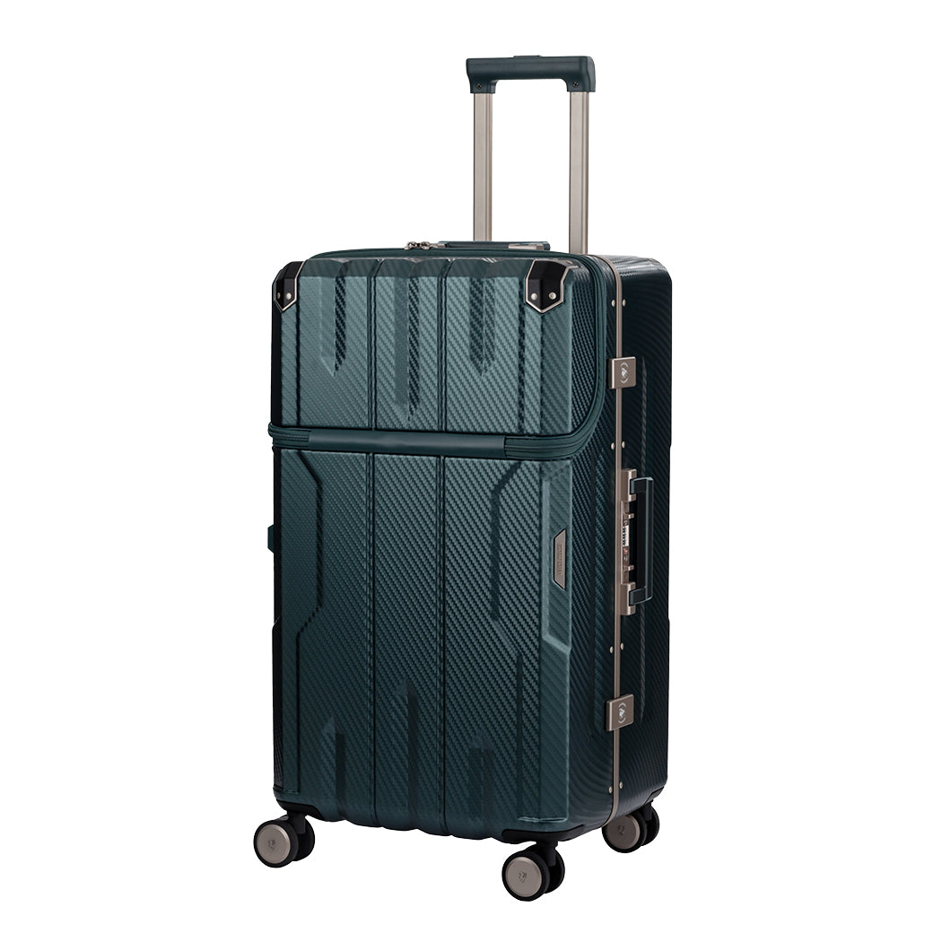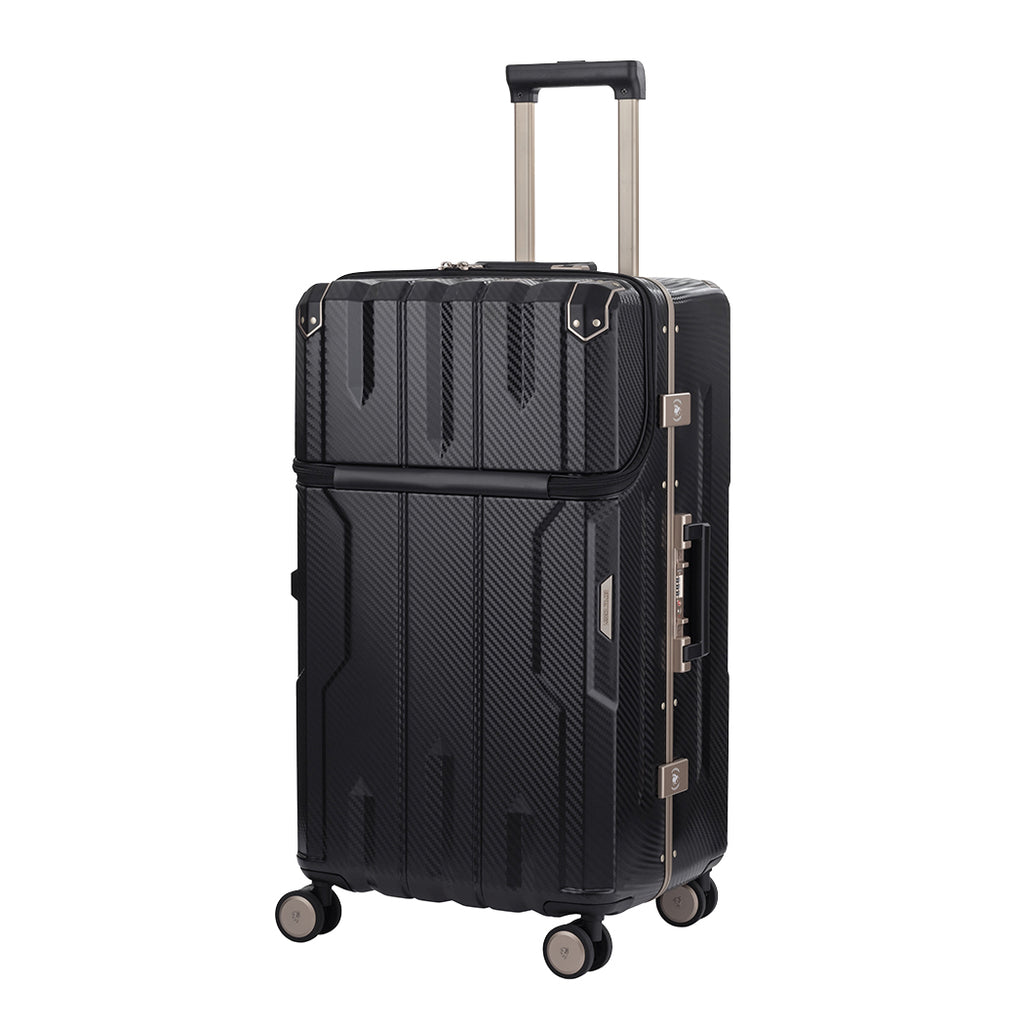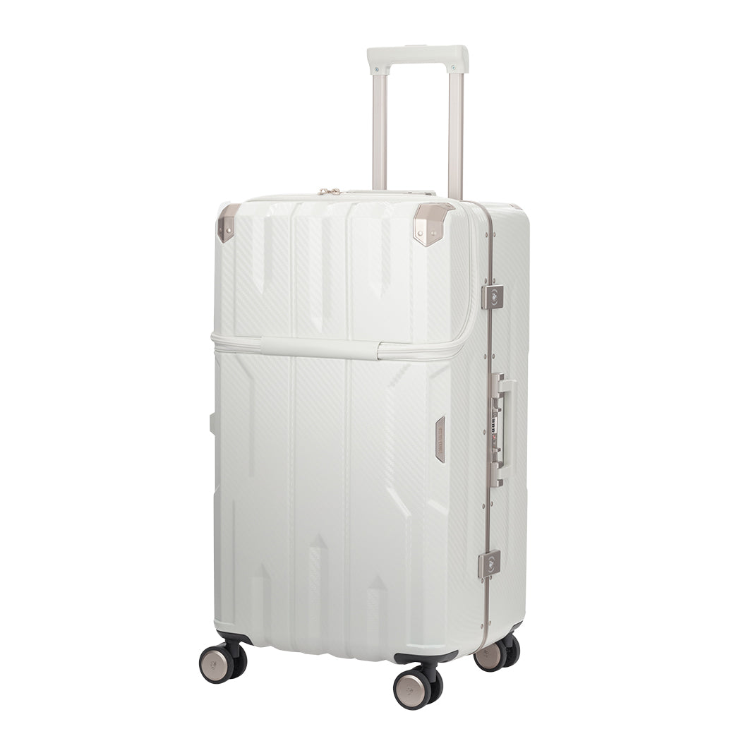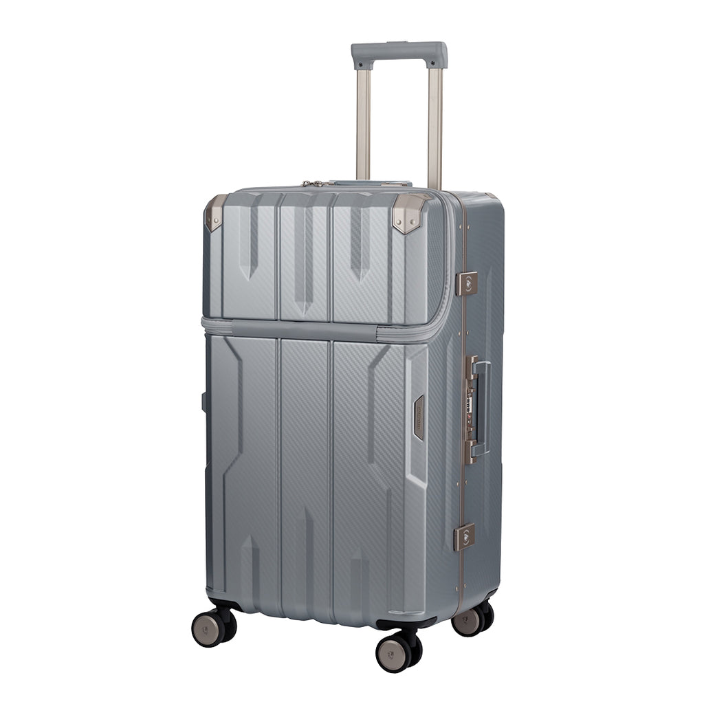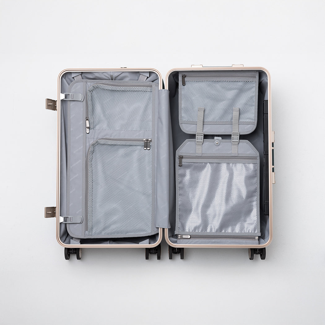 メイン収納の開閉部分には、軽量でスタイリッシュなデザインのアルミニウム製スリムフレームを採用。