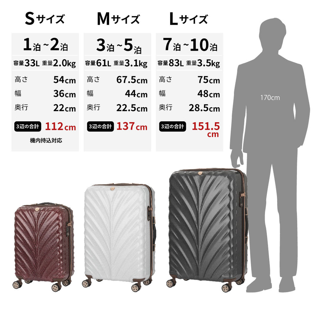ボディ素材には、スーツケース専用素材PCファイバーを採用。