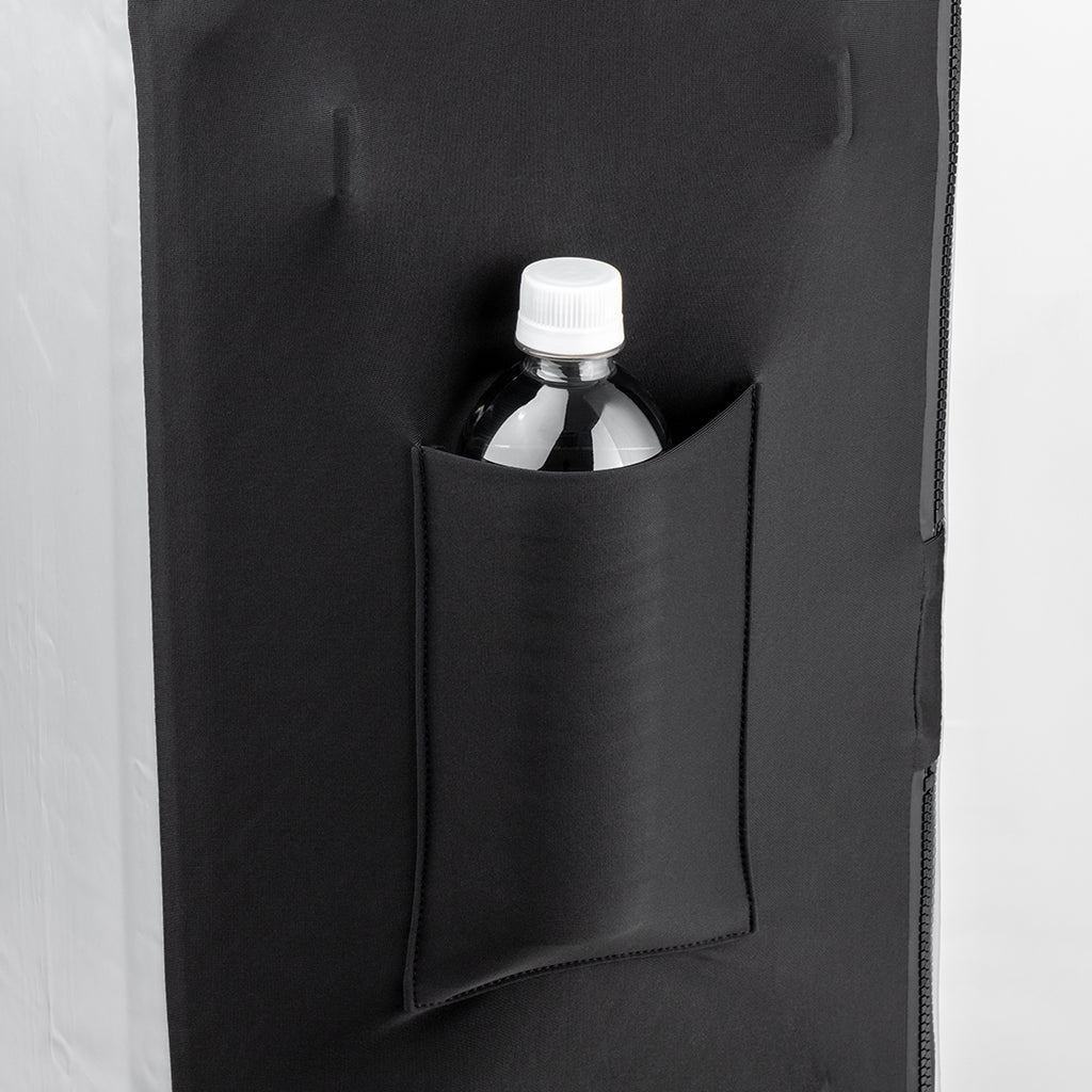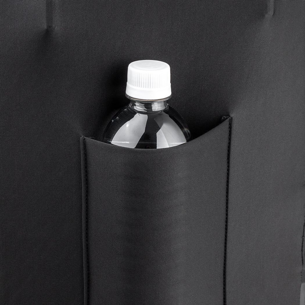 カバー側面には、ペットボトルや傘などを収納できるポケットを装備。